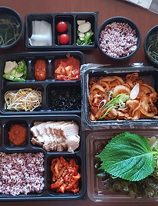 매일 반찬을 조금씩 만들어서 신선하고 음식을 만들어놓은 게 아니라 바로 해주셔서 더 좋았습니다.음식의 양도 많고 흑미밥에 잡곡이 섞여 있어 건강을 생각하며 맛있게 먹었습니다.